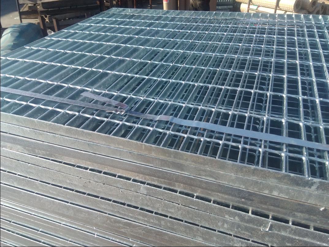 制作要求鋼格柵板應(yīng)選用壓力電阻焊制作,通過(guò)壓力機(jī)將橫桿壓入負(fù)載扁鋼固定。與負(fù)載扁鋼同向的包邊板應(yīng)與每根橫桿焊接。樓梯踏步板的端邊板應(yīng)單面滿焊。在負(fù)載扁鋼的端頭,般情況下應(yīng)運(yùn)用與負(fù)載扁鋼同規(guī)范的扁鋼或型鋼進(jìn)行包邊。樓梯踏步板如有前沿包邊護(hù)板,應(yīng)貫穿整個(gè)踏步。